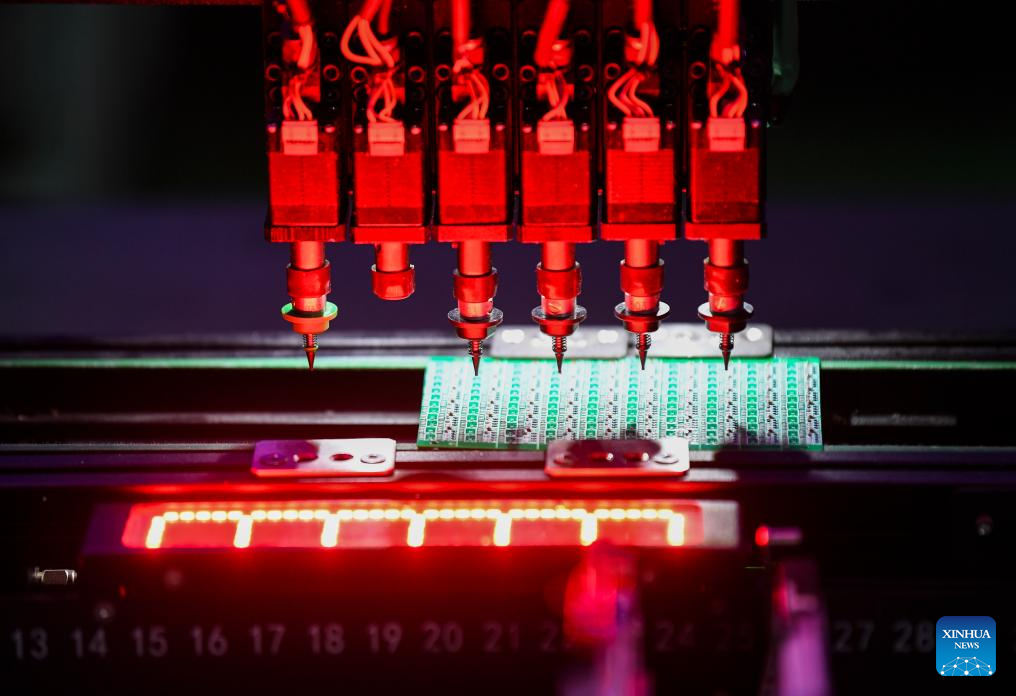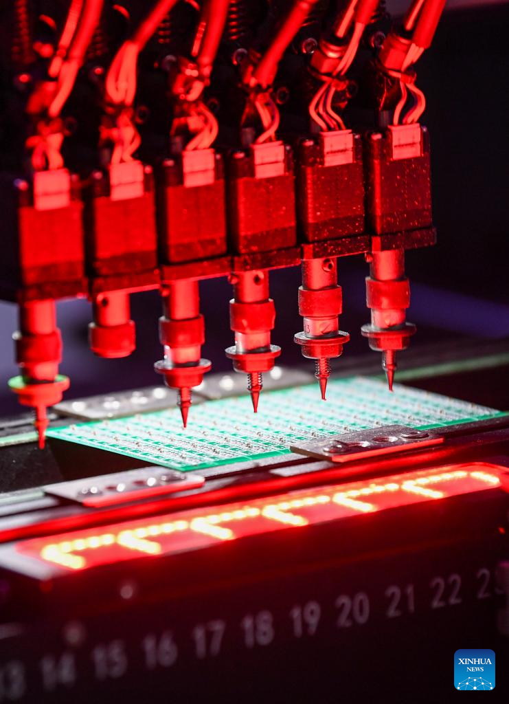 This photo taken on Dec. 4, 2023 shows a company producing electronic components in Chongqing Fuling Comprehensive Bonded Zone, southwest China's Chongqing Municipality. Chongqing Fuling Comprehensive Bonded Zone has continued to improve its business environment in past years, promoting the stability and quality of foreign trade. (Xinhua/Wang Quanchao)