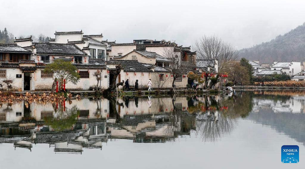 This photo taken on Dec. 19, 2023 shows the snow scenery in Hongcun Village of Huangshan, east China's Anhui Province. (Photo by Shi Yalei/Xinhua)