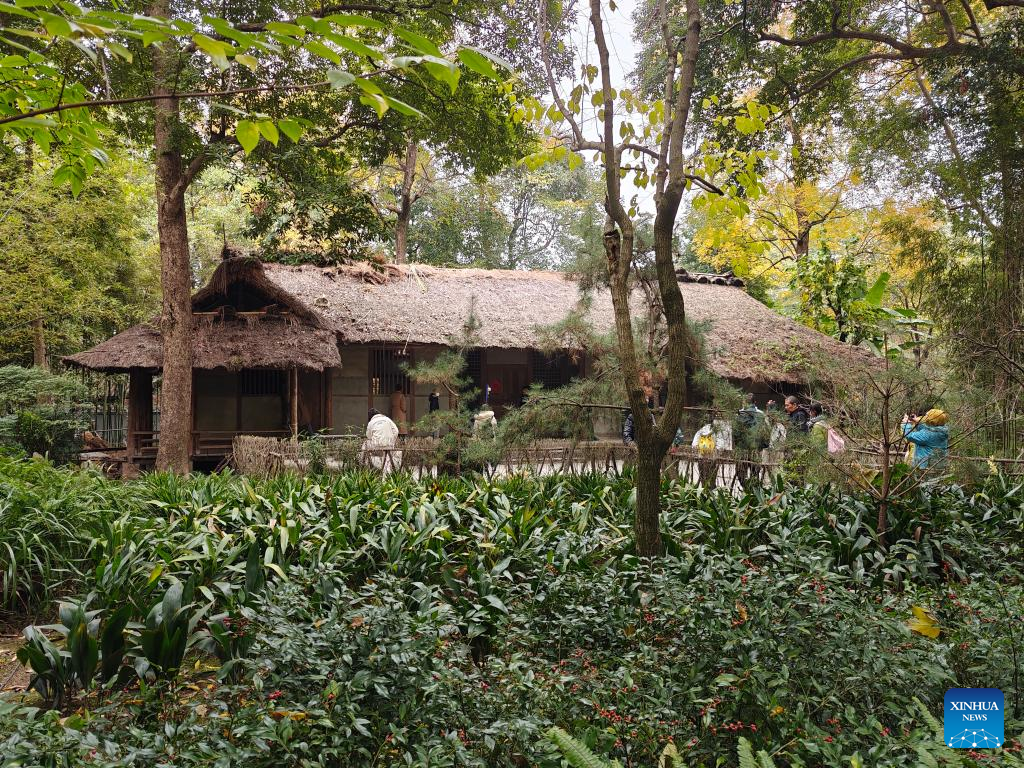 CHENGDU, Dec. 21 (Xinhua) -- A museum in southwest China's Sichuan Province, dedicated to ancient Chinese poet Du Fu, has recently started maintenance and preservation work on the "thatched cottage" - a replica of the poet's former residence.