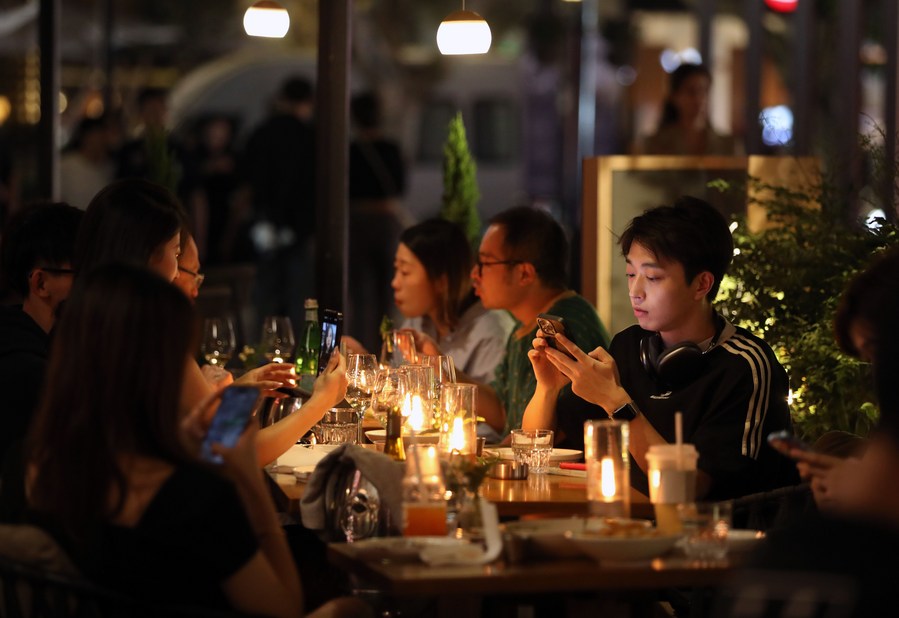 People are seen at a restaurant in Shanghai, east China, Nov. 3, 2023. (Xinhua/Liu Ying)