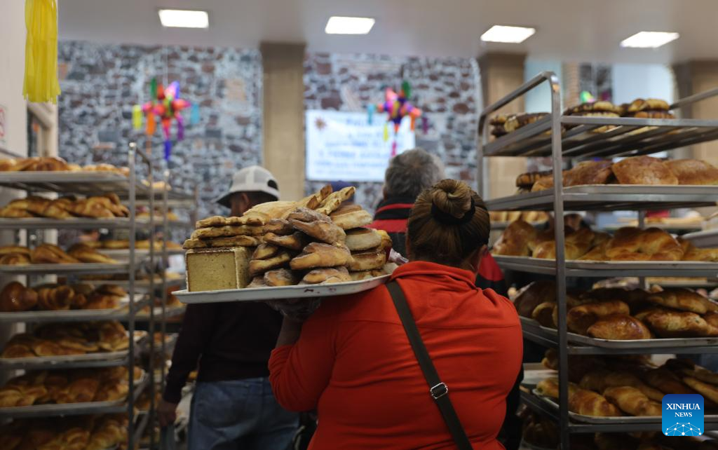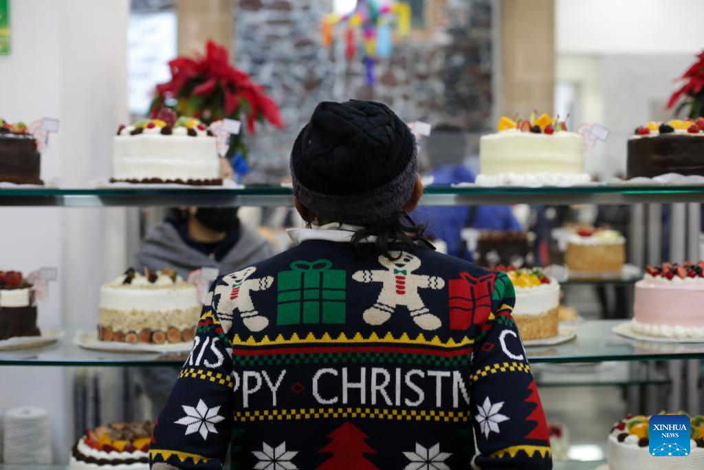 A customer shops at a bakery in Mexico City, Mexico on Dec. 28, 2023. People in Mexico City enjoy themselves as the New Year approaches. (Xinhua/Li Mengxin)