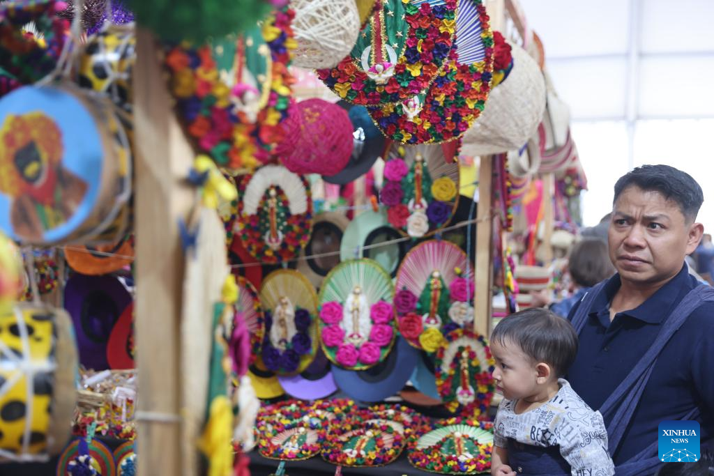 People browse for holiday decorations at a fair in Mexico City, Mexico on Dec. 28, 2023. People in Mexico City enjoy themselves as the New Year approaches. (Xinhua/Li Mengxin)