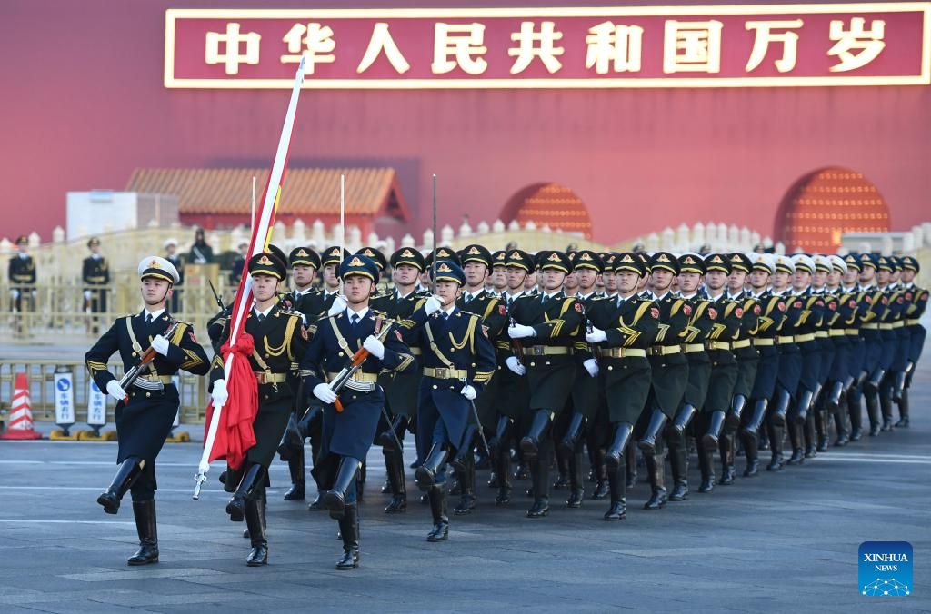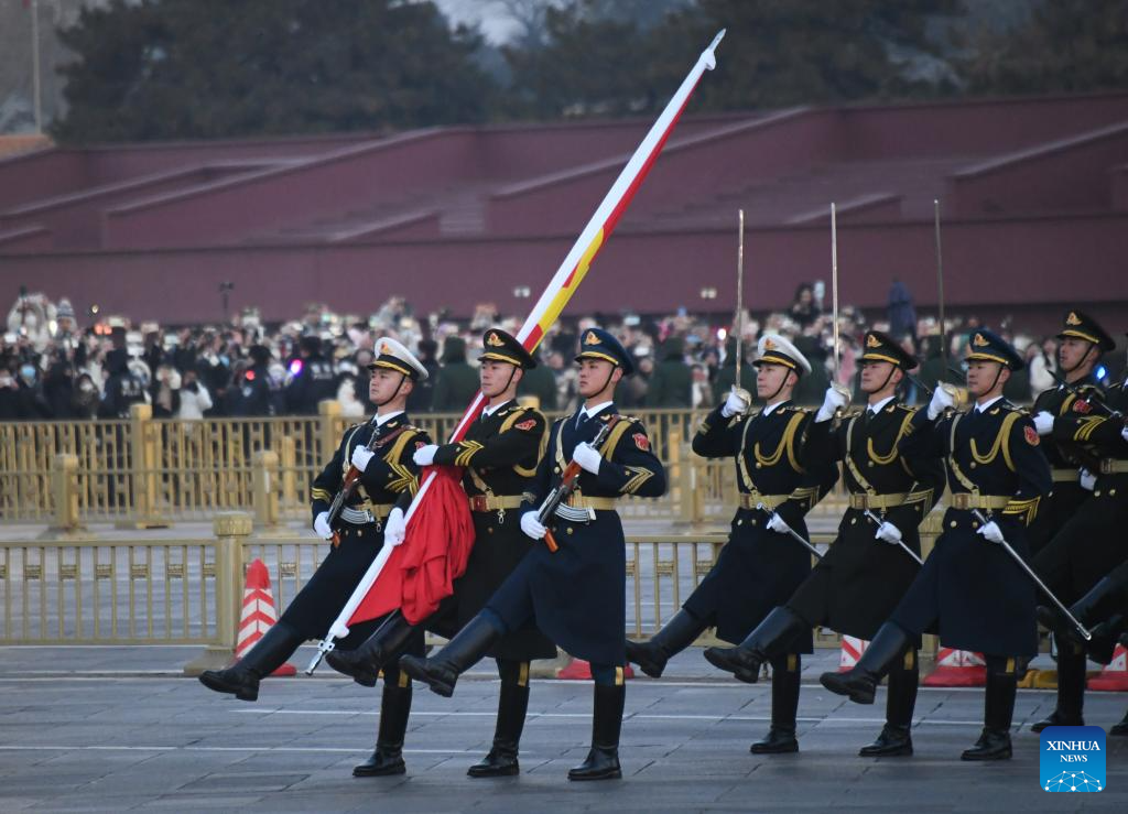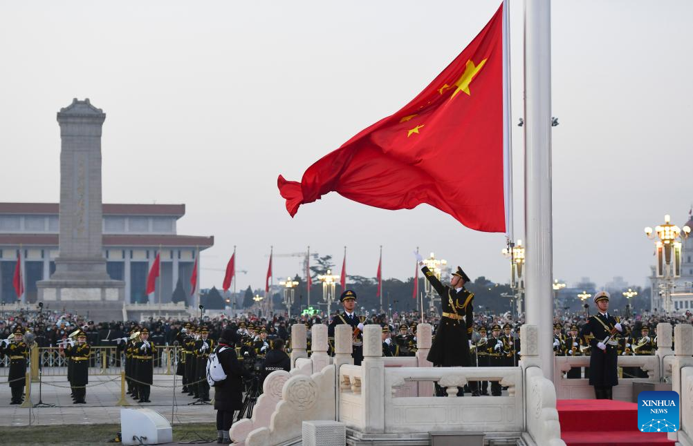 A grand national flag-raising ceremony is held at the Tian'anmen Square in Beijing, capital of China, Jan. 1, 2024. (Xinhua/Ren Chao)