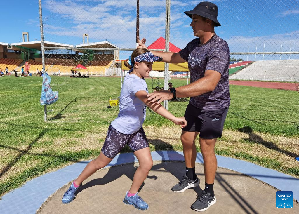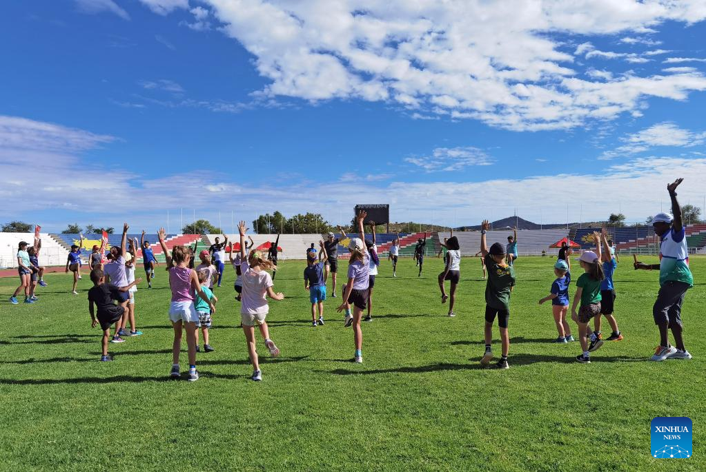 Young people participate in an athletics training camp in Windhoek, Namibia, Jan. 6, 2023. (Photo by Ndalimpinga Iita/ Xinhua)