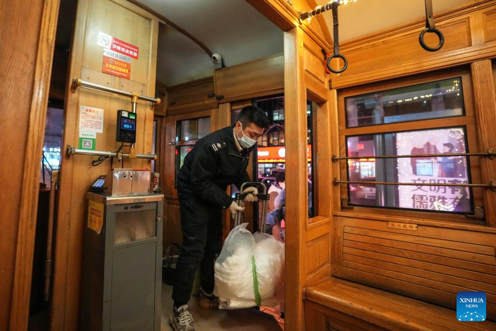 Tram driver Li Peng prepares for departure in Dalian, northeast China's Liaoning Province, Jan. 8, 2024. Since Dec. 31, 2023, several trams in Dalian have been decorated with lights in order to attract more tourists. The history of tram in Dalian City dates back to 1909. After more than 100 years of operation, the tram has become a popular icon of the city. As the tourism industry in Dalian has recovered since 2023, many tourists come to take the trams to enjoy the cityscape. (Xinhua/Pan Yulong)