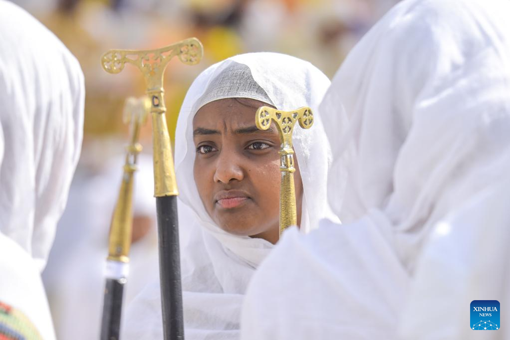 People celebrate Timket, the annual Ethiopian Epiphany festival, in Addis Ababa, the capital of Ethiopia, Jan. 20, 2024. Millions of people on Saturday celebrated Timket, the annual Ethiopian Epiphany festival, across Ethiopia, with government officials and religious leaders urging the faithful to maintain peace and the world's intangible cultural heritage. (Xinhua/Michael Tewelde)