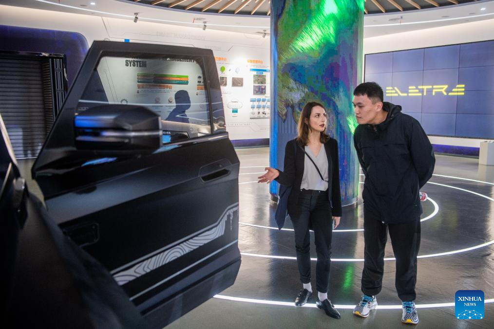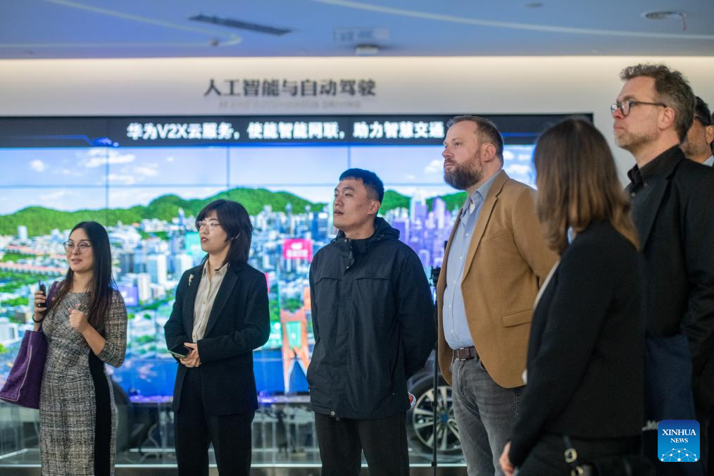 A delegation from the German city of Duisburg visits an intelligent and connected vehicles testing and demonstration area in Wuhan, capital of central China's Hubei Province, March 12, 2024. (Xinhua/Wu Zhizun)