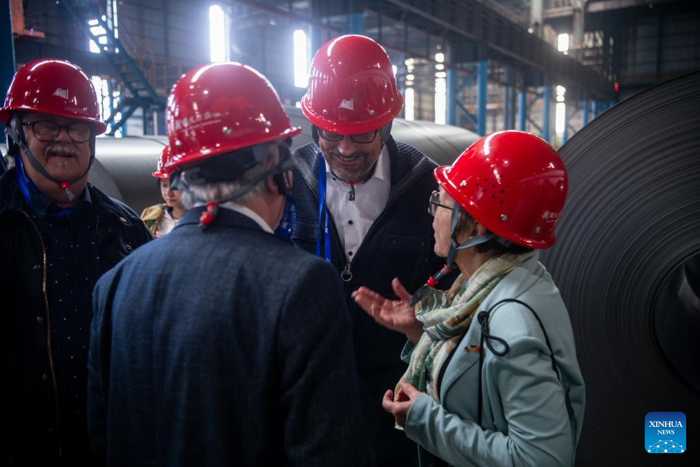 A delegation from the German city of Duisburg visits a factory of Wuhan Iron and Steel (Group) Company in Wuhan, capital of central China's Hubei Province, March 14, 2024. (Xinhua/Wu Zhizun)
