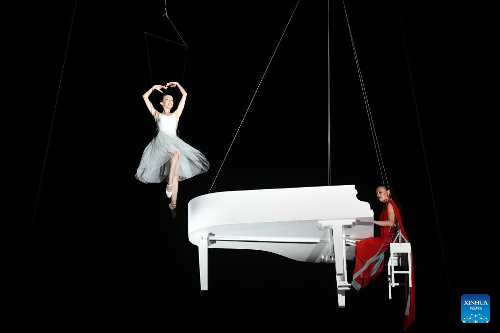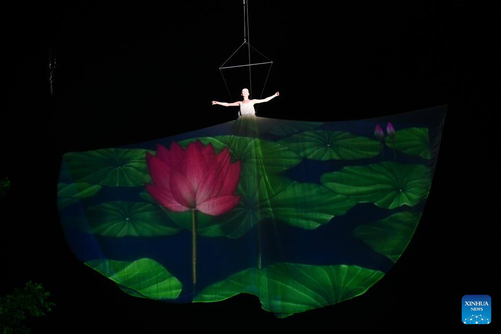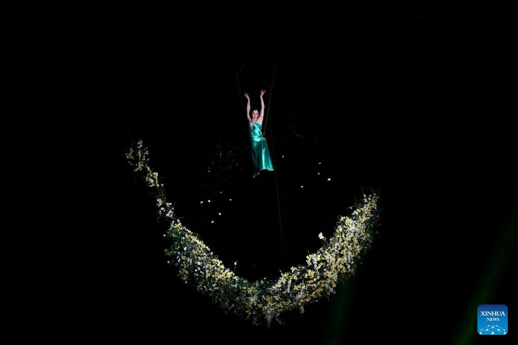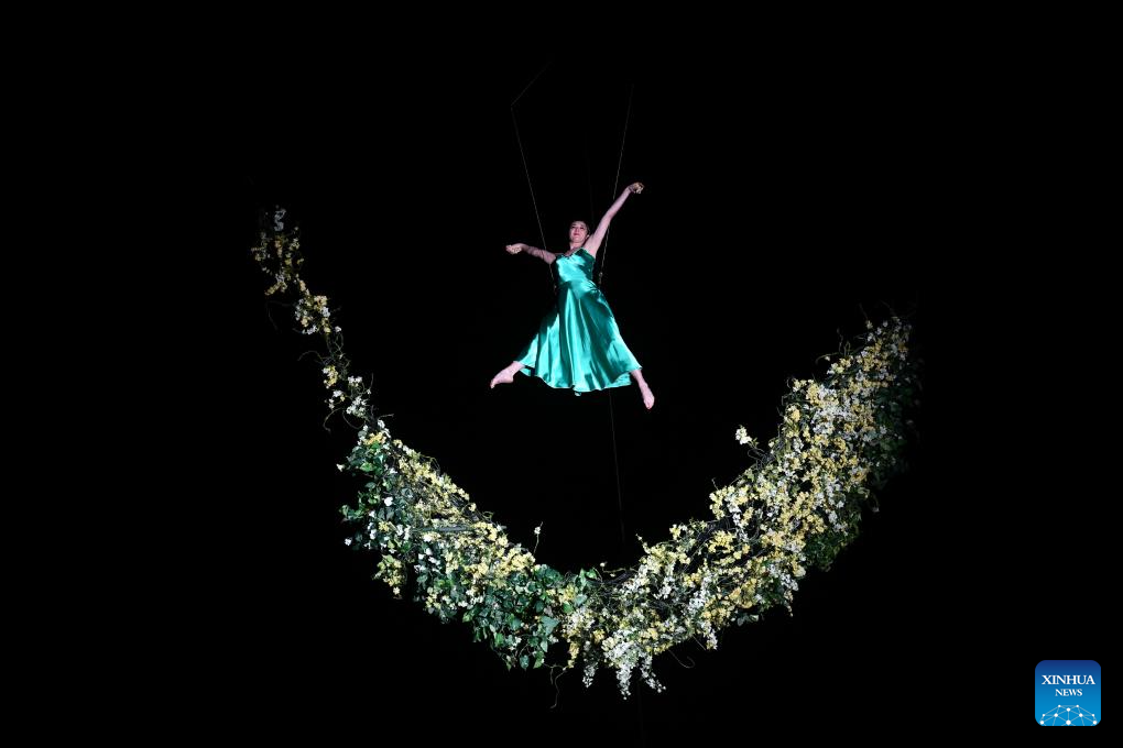A light and shadow performance is staged during the opening ceremony of the Shenzhen-Milan Lifestyle Week in Shenzhen, south China's Guangdong Province, March 19, 2024. (Xinhua/Liang Xu)