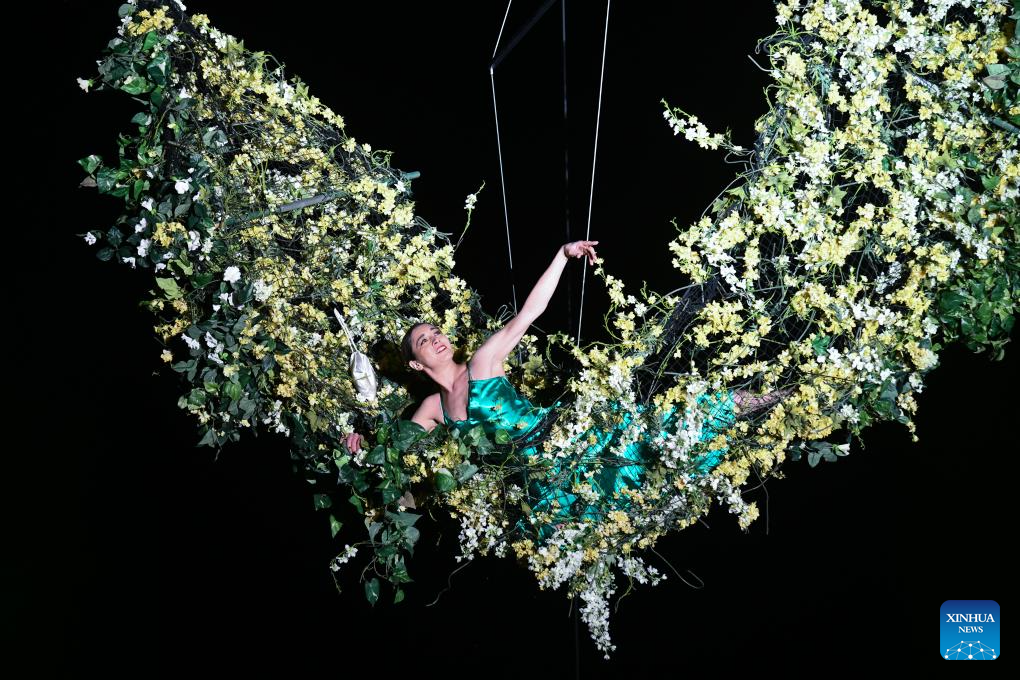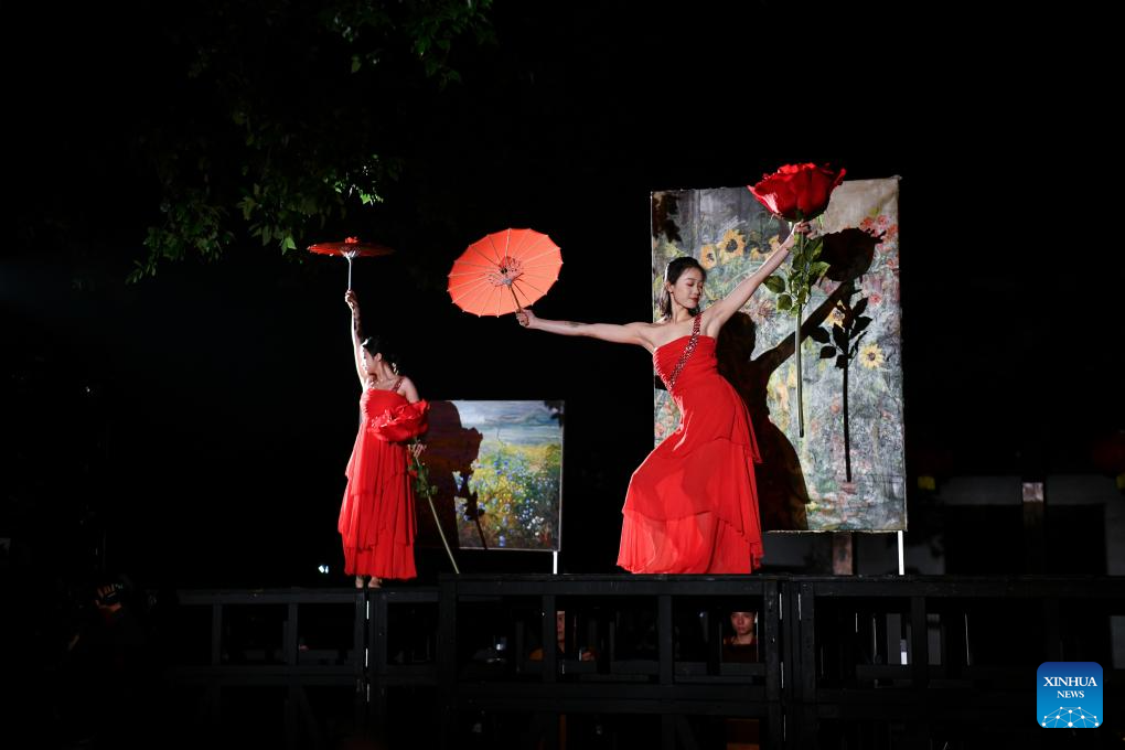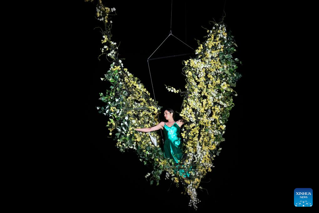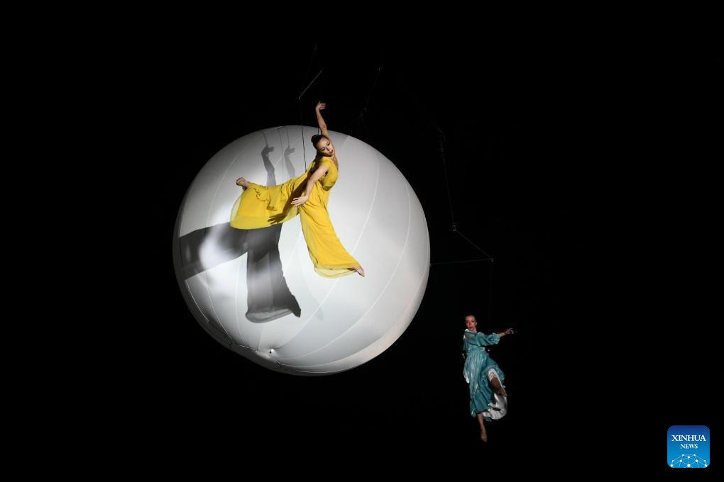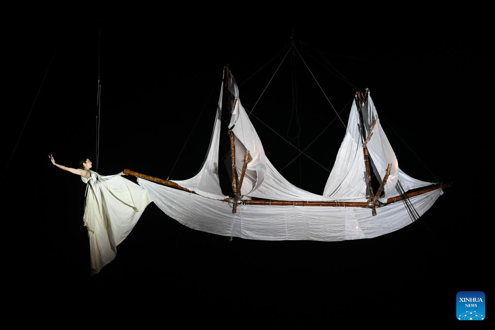 A light and shadow performance is staged during the opening ceremony of the Shenzhen-Milan Lifestyle Week in Shenzhen, south China's Guangdong Province, March 19, 2024. (Xinhua/Liang Xu)