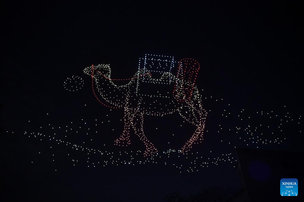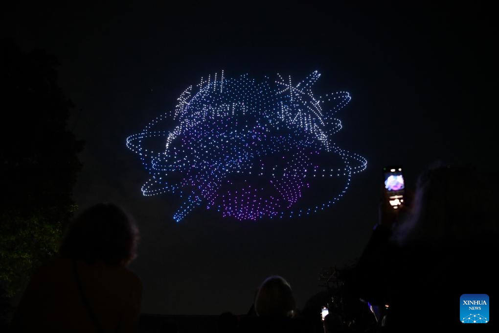 A drone show is staged during the opening ceremony of the Shenzhen-Milan Lifestyle Week in Shenzhen, south China's Guangdong Province, March 19, 2024. (Xinhua/Liang Xu)