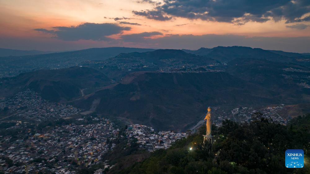 An aerial drone photo taken on March 20, 2024 shows scenery at dusk in Tegucigalpa, Honduras. (Xinhua/Li Mengxin)