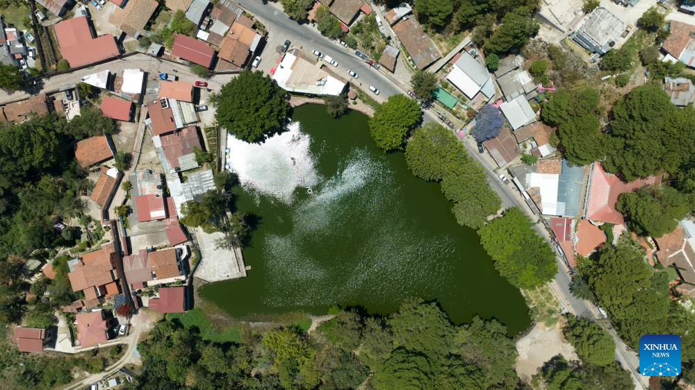 An aerial drone photo taken on March 21, 2024 shows a lake in St. Lucia, Tegucigalpa, Honduras. (Xinhua/Li Mengxin)