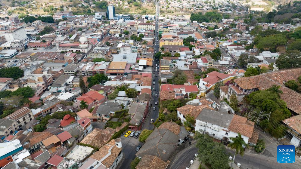 An aerial drone photo taken on March 21, 2024 shows a view in Tegucigalpa, Honduras. (Xinhua/Li Mengxin)