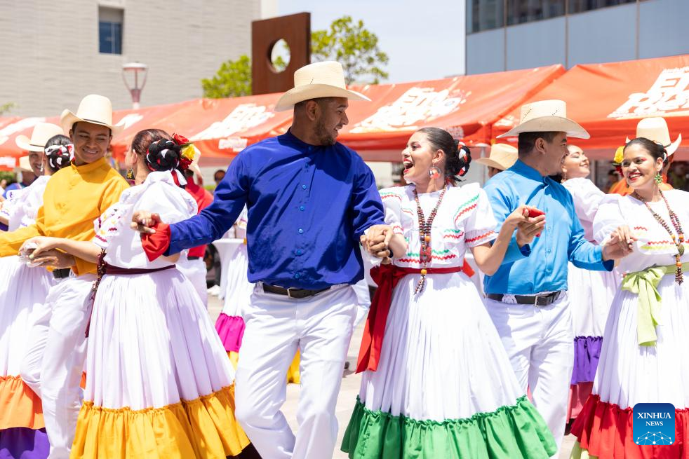 Folk dancers perform in Tegucigalpa, Honduras, March 20, 2024. (Xinhua/Li Mengxin)