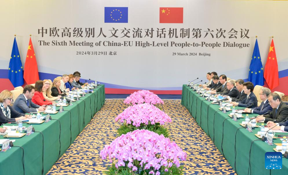 BEIJING, March 29 (Xinhua) -- The sixth meeting of China-EU High-Level People-to-People Dialogue was held in Beijing on Friday, with China and the European Union (EU) agreeing to promote people-to-people exchanges and practical cooperation.