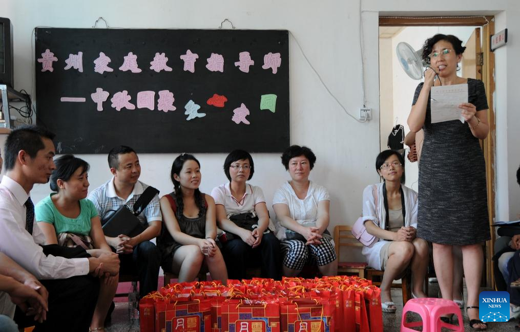GUIYANG, April 2 (Xinhua) -- Zhao Xinling likes to tell her son, whom she affectionately calls Hao Hao, one particular story: At bedtime, a little hare asks a big hare to guess how much he loves him, and the little hare says, "I love you all the way to the moon."