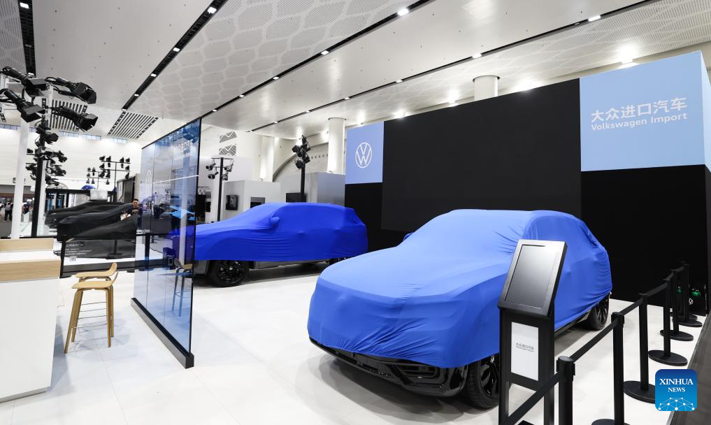 Vehicles are seen at the exhibition area of fashion and life at the Hainan International Convention and Exhibition Center, the main venue for the upcoming fourth China International Consumer Products Expo, in Haikou, south China's Hainan Province. The fourth China International Consumer Products Expo will open on Saturday in Haikou, the capital city of south China's Hainan Province.