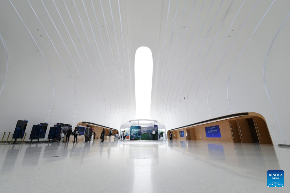 This photo shows a view inside the Zhongguancun International Innovation Center, new venue for Zhongguancun Forum (ZGC Forum), in Beijing, capital of China, April 24, 2024. Themed "Innovation: Building a Better World," this year's ZGC Forum is to be held at Zhongguancun International Innovation Center for the first time in Beijing from April 25 to 29. (Xinhua/Chen Zhonghao)