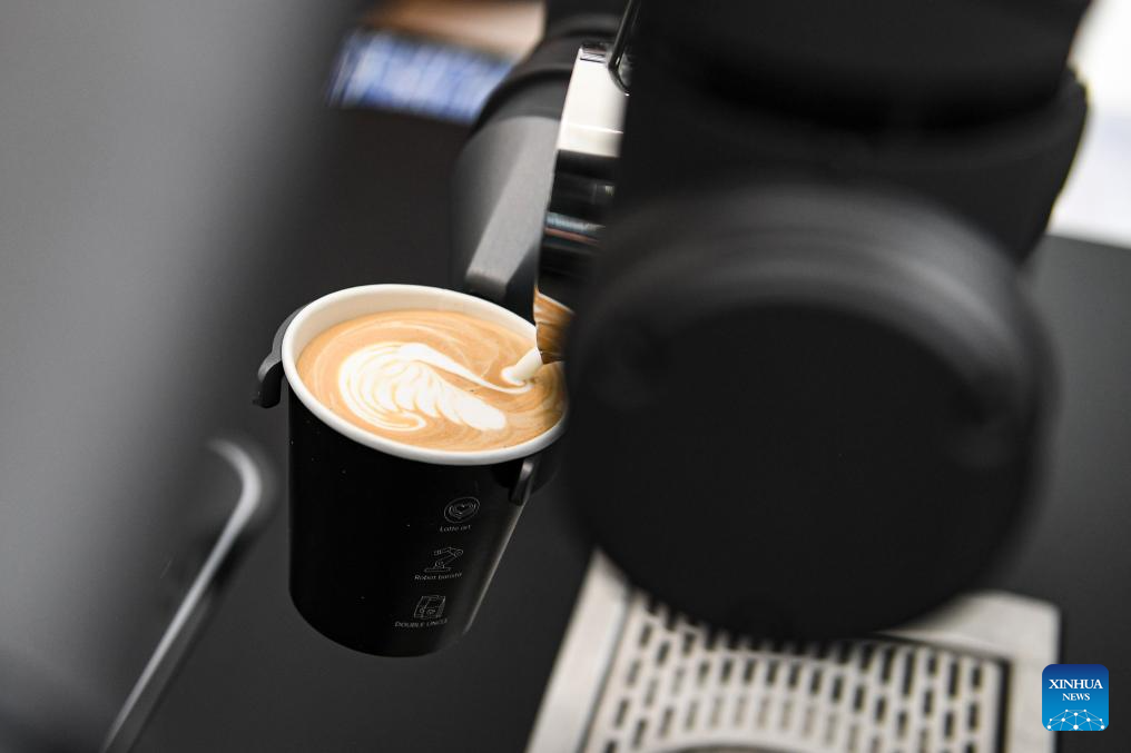 This photo shows a robot making coffee at the Zhongguancun International Innovation Center, new venue for Zhongguancun Forum (ZGC Forum), in Beijing, capital of China, April 24, 2024. Themed "Innovation: Building a Better World," this year's ZGC Forum is to be held at Zhongguancun International Innovation Center for the first time in Beijing from April 25 to 29. (Xinhua/Chen Zhonghao)