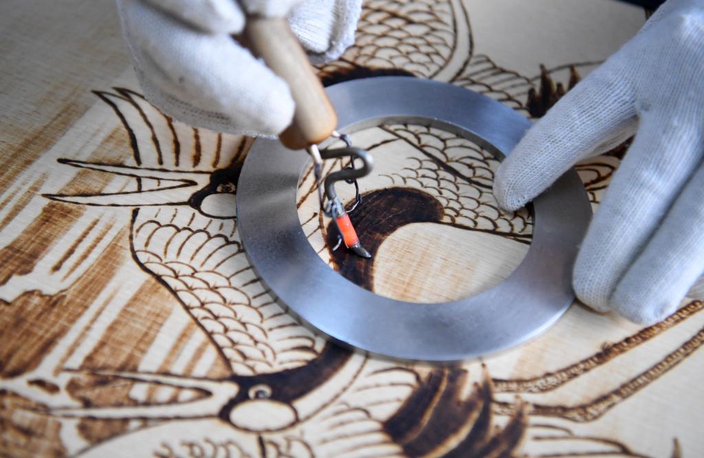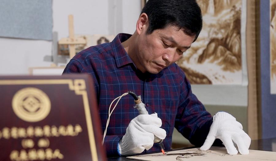 Nowadays, Li Zhe is dedicated to making pyrography products combining both utility and art values. He cooperates with tourist sites to make cultural and creative products, enabling tourists to bring home pyrography works showcasing views and customs in Nanyang. The factory also has explored new ways to promote the craft with schools and companies. In the future, Li hopes that the craft will be popular among common people, especially the young. "I hope that the ancient art will develop well through innovation and inheriting," said Li Zhe.