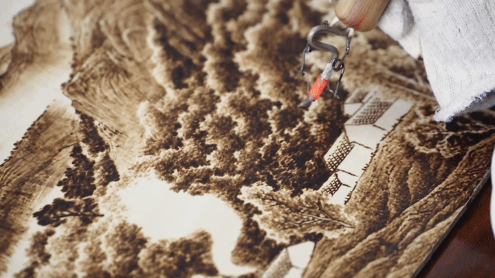 Since assuming the director of the Nanyang Pyrography Factory in 2008, Li Zhe and his colleagues have created thousands pieces of wooden and silk pyrography. He has also set up an institute on Nanyang Pyrography, which is recognized as a demonstration center for the intangible cultural heritage.