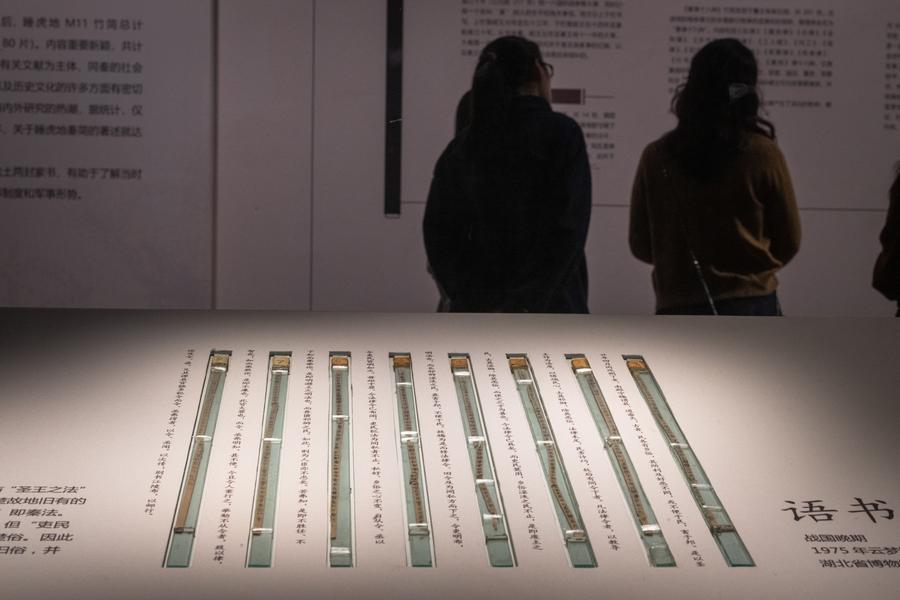 WUHAN, April 30 (Xinhua) -- An exhibition of bamboo slips discovered at the tomb of a local official back in the Qin Dynasty (221 BC-207 BC) kicked off here on Tuesday.