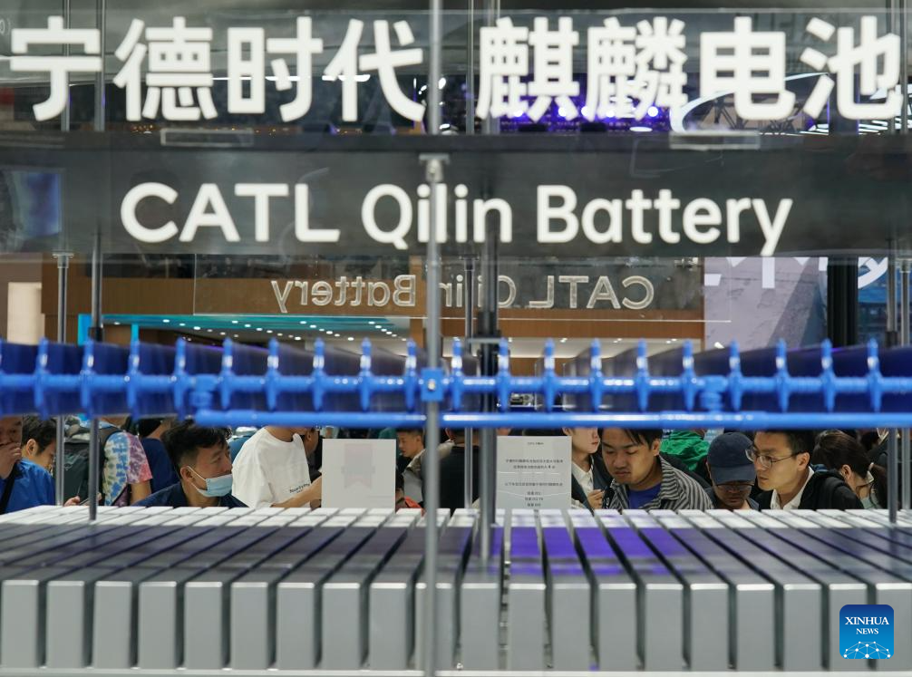 People visit the booth of CATL at the 2024 Beijing International Automotive Exhibition in Beijing, China, April 30, 2024. The 2024 Beijing International Automotive Exhibition, an A-list event continuing through May 4, is showcasing an unprecedented number of new energy vehicles (NEVs), with 278 distinct NEV models on display, reflecting the growing dominance of NEVs in the auto industry. The cutting-edge technologies, customer-friendly novelties and affordability have wowed visitors at the show and underlined how the Chinese NEV sector has succeeded in zooming ahead over the past decade.