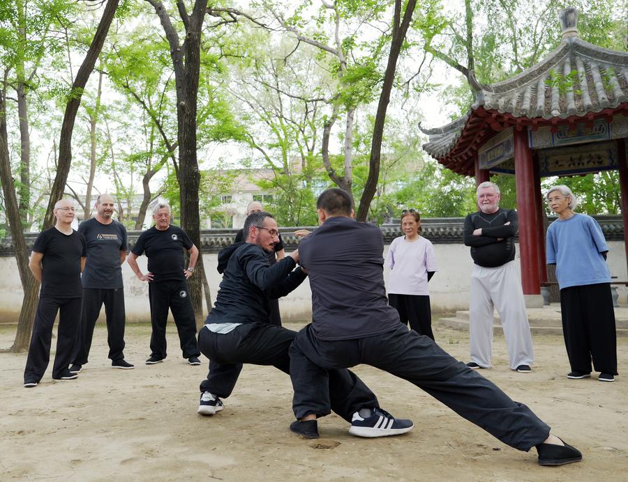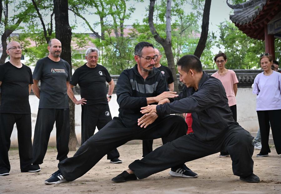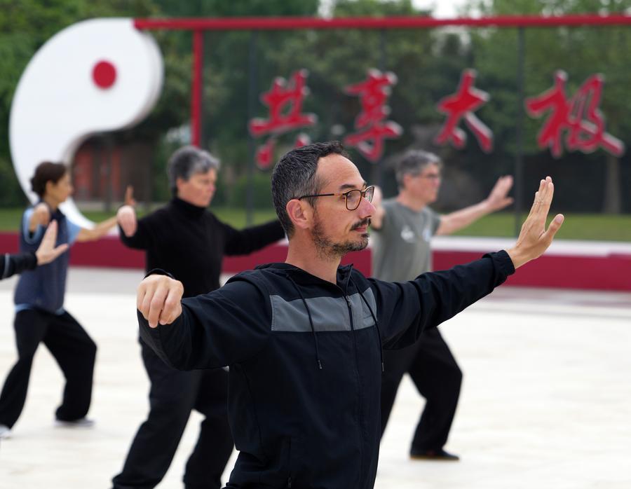 Chen Ziqiang (front R) instructs Guillaume Large (front L) in Chenjiagou Village of Wenxian County, central China's Henan Province, April 18, 2024. (Xinhua/Li An)Guillaume Large (3rd L) communicates with French students in Chenjiagou Village of Wenxian County, central China's Henan Province, April 19, 2024. (Xinhua/Li An)Guillaume Large (1st L) and French students visit Chenjiagou Village of Wenxian County, central China's Henan Province, April 19, 2024. (Xinhua/Li An)A French student takes a video of the Taichi performance in Chenjiagou Village of Wenxian County, central China's Henan Province, April 18, 2024. (Xinhua/Li An)A student performs Taichi in Chenjiagou Village of Wenxian County, central China's Henan Province, April 18, 2024. (Xinhua/Li An)Guillaume Large (front) practices Taichi with French students in Chenjiagou Village of Wenxian County, central China's Henan Province, April 18, 2024. (Xinhua/Li An)Guillaume Large drinks water after a training session of Taichi in Chenjiagou Village of Wenxian County, central China's Henan Province, April 18, 2024. (Xinhua/Li An)Guillaume Large (front L) practices Taichi in Chenjiagou Village of Wenxian County, central China's Henan Province, April 19, 2024. (Xinhua/Li Jianan)Guillaume Large practices Taichi in Chenjiagou Village of Wenxian County, central China's Henan Province, April 18, 2024. (Xinhua/Li Jianan)Guillaume Large (front L) practices Taichi with Chen Ziqiang (front R) in Chenjiagou Village of Wenxian County, central China's Henan Province, April 18, 2024.(Xinhua/Li An)Guillaume Large (1st L) practices Taichi with French students in Chenjiagou Village of Wenxian County, central China's Henan Province, April 19, 2024. (Xinhua/Li An)A French student practices stone-lift in Chenjiagou Village of Wenxian County, central China's Henan Province, April 18, 2024. (Xinhua/Li An)Guillaume Large (front) practices Taichi in Chenjiagou Village of Wenxian County, central China's Henan Province, April 19, 2024. (Xinhua/Li Jianan)French students practice Taichi on the St. Emilion Monolithic Church Square near Bordeaux, France, 2019. (Xinhua)Guillaume Large (L) visits Chenjiagou Village of Wenxian County, central China's Henan Province, April 19, 2024. (Xinhua/Li An)This aerial drone photo taken on April 19, 2024 shows people practicing Taichi in Chenjiagou Village of Wenxian County, central China's Henan Province. (Xinhua/Li Jianan)Guillaume Large (front L) and Chen Ziqiang (front R) practice Taichi in Chenjiagou Village of Wenxian County, central China's Henan Province, April 18, 2024.(Xinhua/Li An)Guillaume Large (front L) practices Taichi with Chen Ziqiang (front R) in Chenjiagou Village of Wenxian County, central China's Henan Province, April 18, 2024.(Xinhua/Li Jianan)Chen Ziqiang (L) instructs Guillaume Large in Chenjiagou Village of Wenxian County, central China's Henan Province, April 18, 2024. (Xinhua/Li Jianan)Guillaume Large (1st R) and French students visit in Chenjiagou Village of Wenxian County, central China's Henan Province, April 19, 2024. (Xinhua/Li Jianan)Guillaume Large (front L) and Chen Ziqiang (front R) practice Taichi with French students in Chenjiagou Village of Wenxian County, central China's Henan Province, April 19, 2024. (Xinhua/Li An)Guillaume Large (front R) practices Taichi with Chen Ziqiang in Chenjiagou Village of Wenxian County, central China's Henan Province, April 18, 2024. (Xinhua/Li Jianan)Guillaume Large (2nd R) watches a Taichi performance in Chenjiagou Village of Wenxian County, central China's Henan Province, April 18, 2024. (Xinhua/Li An)Chen Ziqiang (front) practices Taichi with French students in Chenjiagou Village of Wenxian County, central China's Henan Province, April 19, 2024. (Xinhua/Li An)Chen Ziqiang (L) instructs Guillaume Large in Chenjiagou Village of Wenxian County, central China's Henan Province, April 18, 2024. (Xinhua/Li An)■