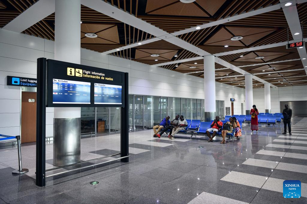 This photo taken on May 15, 2024 shows an interior view of Malabo International Airport in Equatorial Guinea. The new terminal project of Malabo International Airport, constructed by Weihai International Economic & Technical Cooperative Co., Ltd., turned operational in March 2023. Designed and built entirely according to Chinese standards, the project has a total construction area of approximately 45,000 square meters, capable of take-off and landing services for various types of civil aviation aircraft worldwide. (Xinhua/Han Xu)