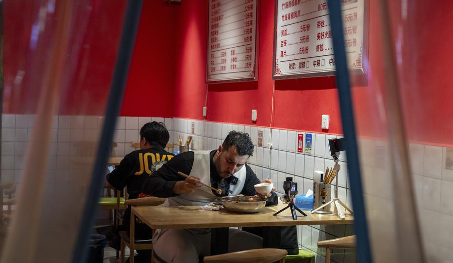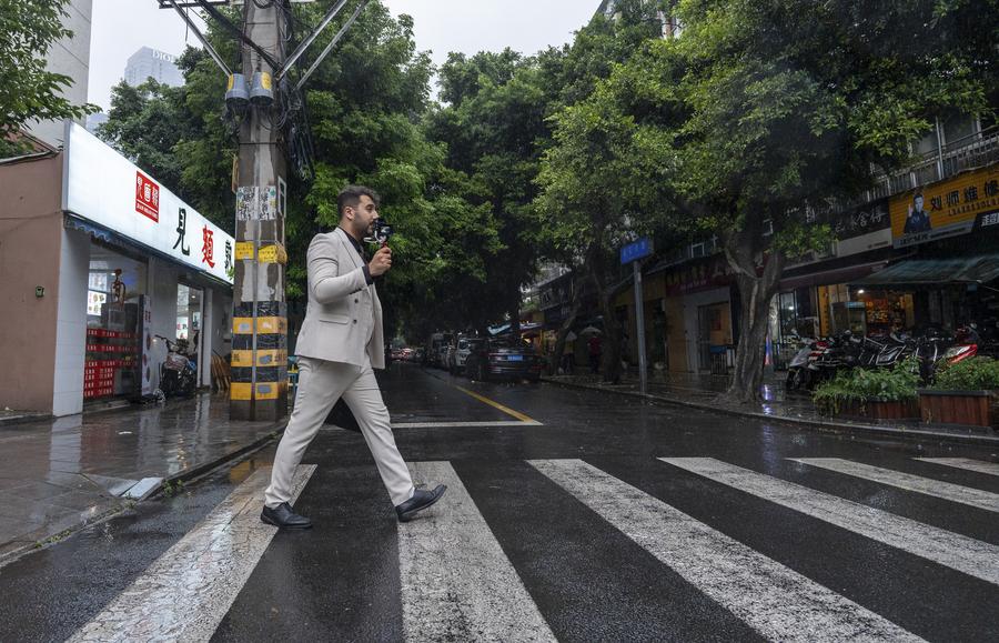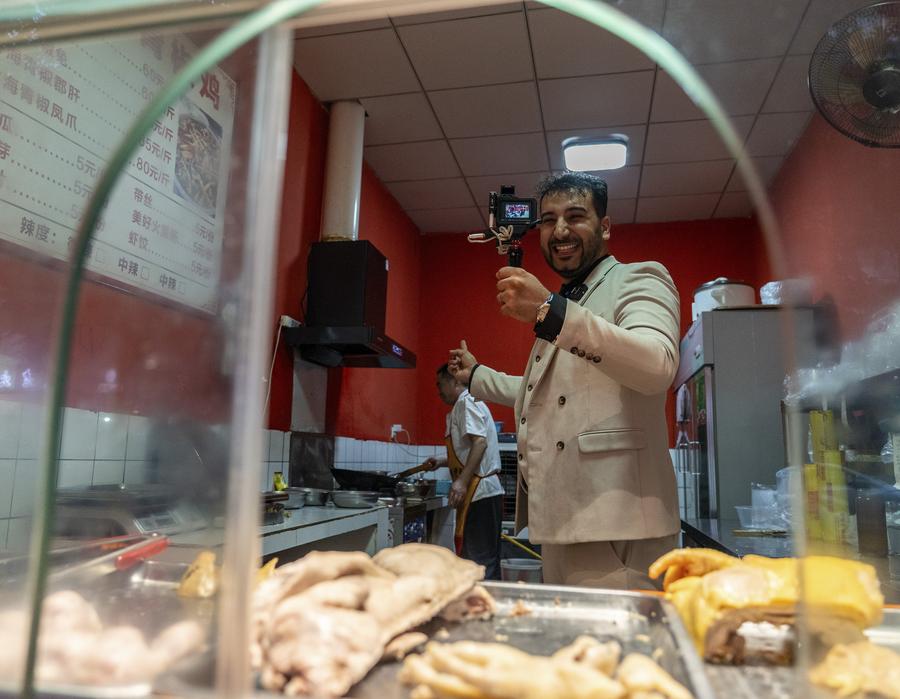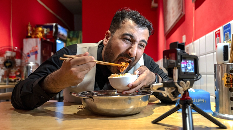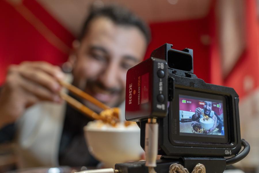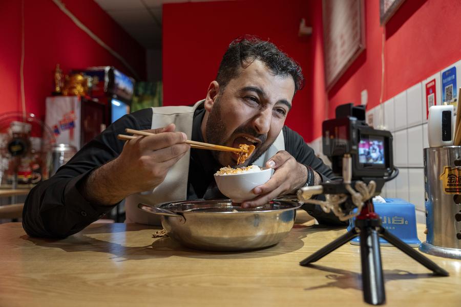 CHENGDU, June 3 (Xinhua) -- Dressed in a smart suit, Ahmed Mohammed Jaber talks to the camera in Mandarin with an accent, commencing his latest food exploration vlog. Jaber, also known by the Chinese name Wang Lixuan, hails from Iraq and has made China his home for a decade.