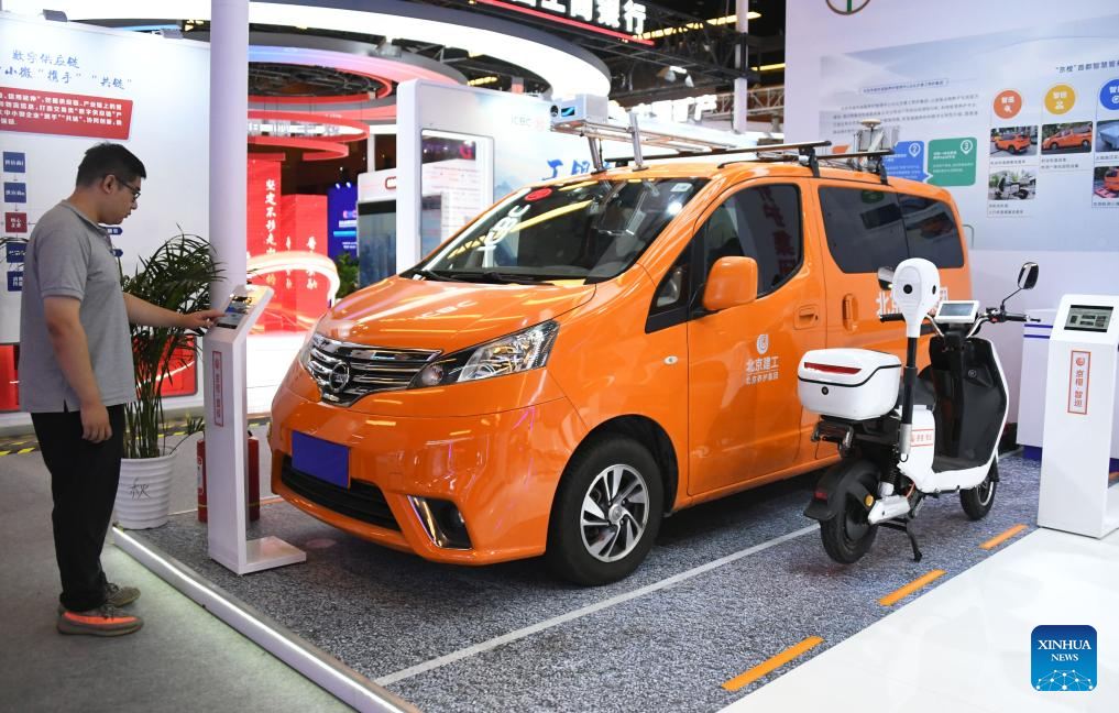 This photo taken on July 2, 2024 shows an unmanned autonomous driving vehicle displayed during the Global Digital Economy Conference 2024 (GDEC 2024) in Beijing, capital of China. Themed on "Opening Up a New Era of Digital Intelligence, Sharing a New Digital Future," the GDEC 2024 kicked off here on Tuesday and will last till July 5. (Xinhua/Ren Chao)