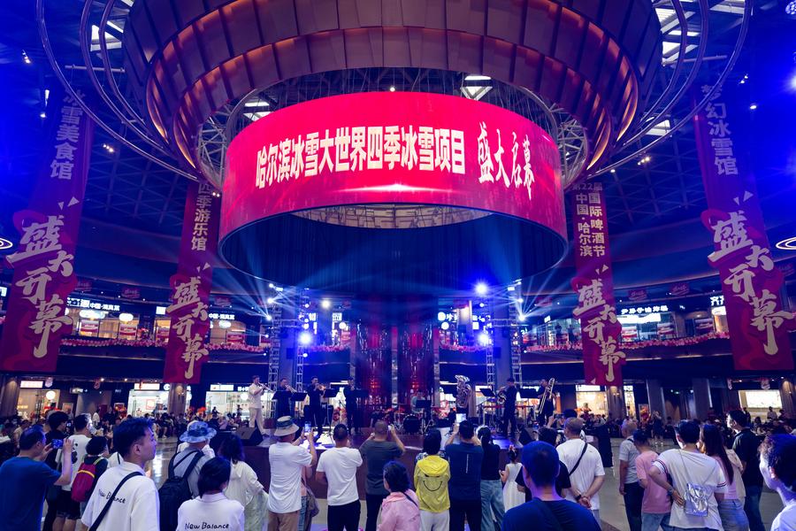 HARBIN, July 7 (Xinhua) -- Tourists visiting Harbin, China's "Ice City" in its northernmost Heilongjiang Province, now have a new attraction to explore, namely an indoor ice and snow theme park that opened on Saturday.