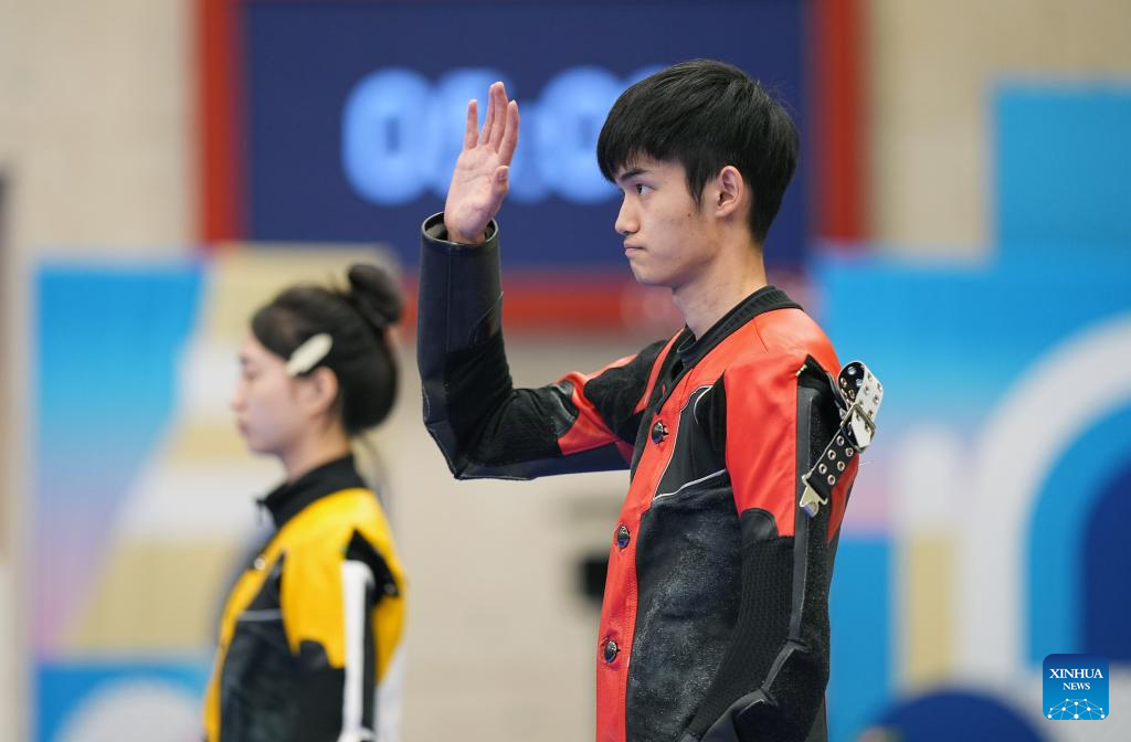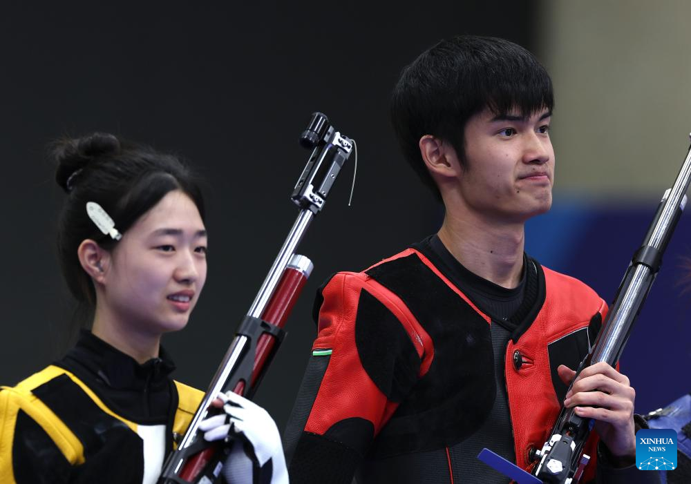 The honor of winning the first gold medal went to Sheng Lihao and Huang Yuting, who claimed a close 16-12 win over South Korean shooters in the final of the 10m air rifle mixed team. Kazakhstan earlier won the bronze in the event.