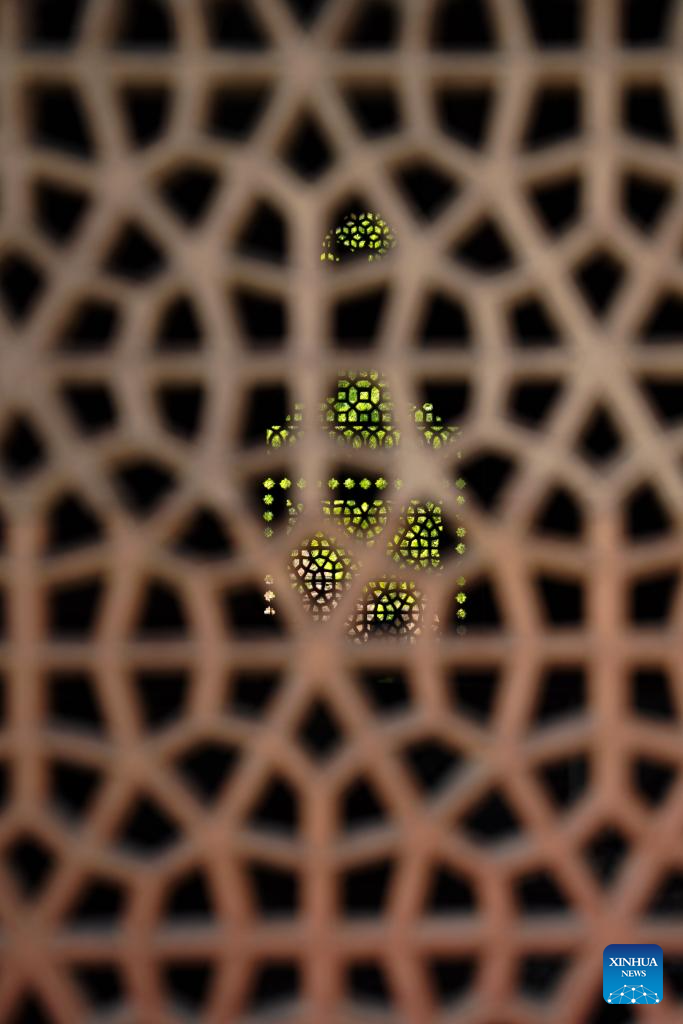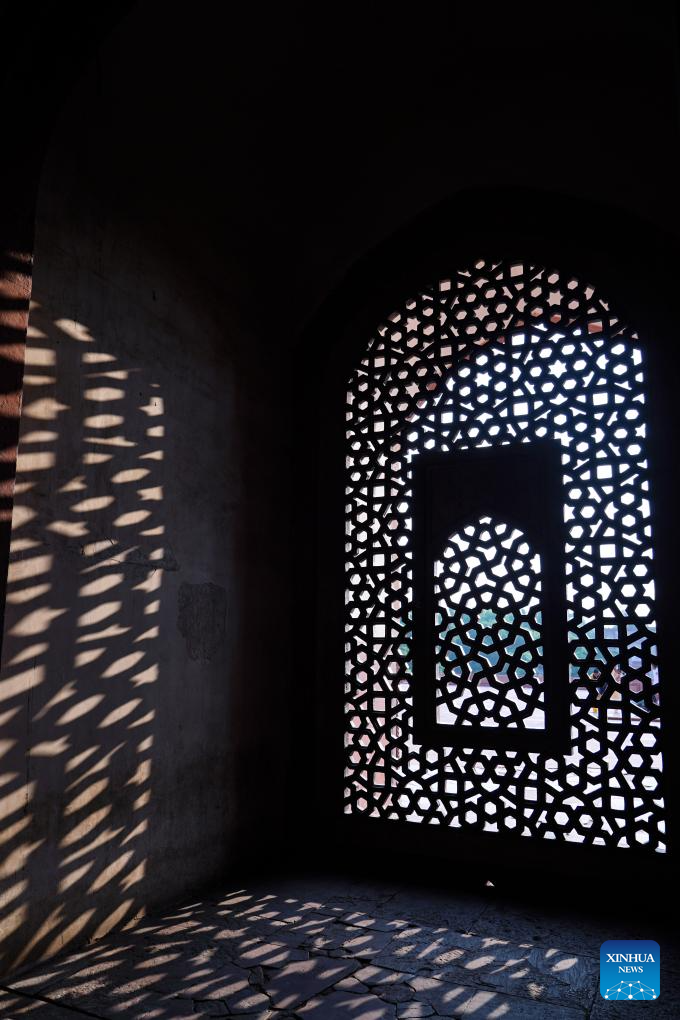 This photo taken on July 29, 2024 shows carved windows of the Humayun's Tomb in New Delhi, India.