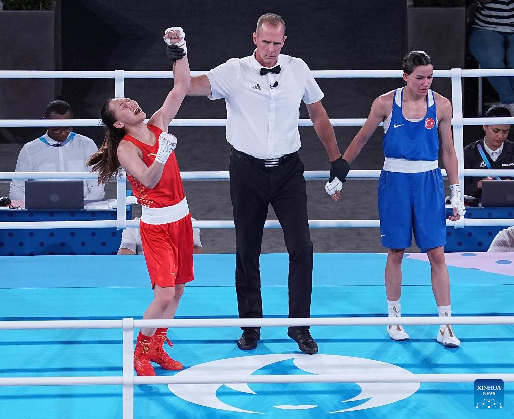 PARIS, Aug. 8 (Xinhua) -- China's boxer Chang Yuan secured the women's 54kg gold at the Paris Olympic Games here on Thursday night in a clear unanimous decision against Turkey's Hatice Akbas.