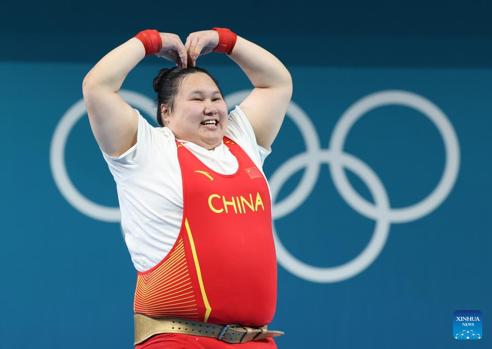 PARIS, Aug. 11 (Xinhua) -- Chinese weightlifter Li Wenwen claimed the women's +81kg title on the last day of the Paris Olympics on Sunday in the South Paris Arena.