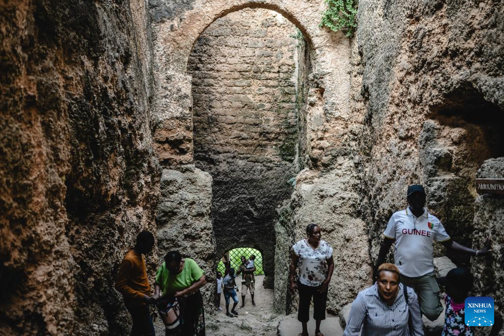 Tourists visit Fort Jesus on the coast of the Old Town of Mombasa, Kenya, on Aug. 17, 2024. The Old Town of Mombasa, located on the southeast side of Mombasa Island, has become an important tourist destination in Kenya due to its diverse culture and historical sites. (Xinhua/Wang Guansen)