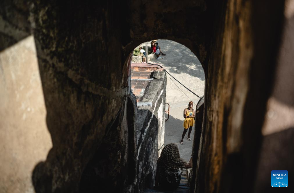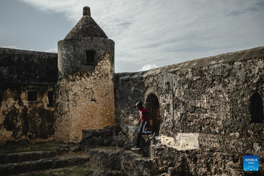 A child is seen at Fort Jesus built on the coast of the Old Town of Mombasa, Kenya, on Aug. 17, 2024. The Old Town of Mombasa, located on the southeast side of Mombasa Island, has become an important tourist destination in Kenya due to its diverse culture and historical sites. (Xinhua/Wang Guansen)