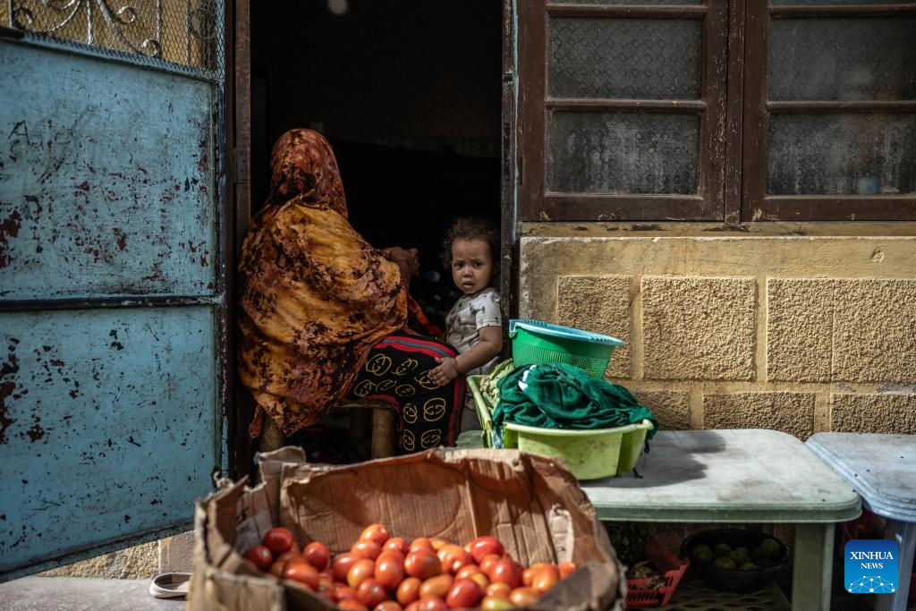 A vendor sells tomatoes in the Old Town of Mombasa, Kenya, on Aug. 17, 2024. The Old Town of Mombasa, located on the southeast side of Mombasa Island, has become an important tourist destination in Kenya due to its diverse culture and historical sites. (Xinhua/Wang Guansen)