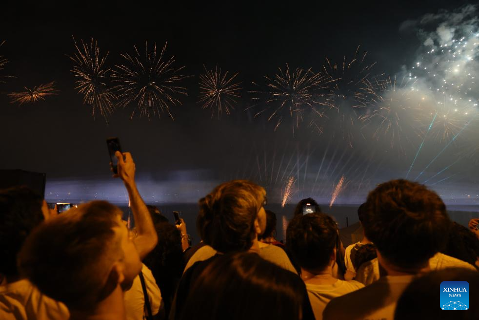 BUDAPEST, Aug. 20 (Xinhua) -- Hungary celebrated its state foundation day on Tuesday with a series of events across the nation, culminating in an airshow over the Danube River and a spectacular fireworks display.