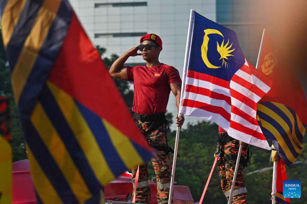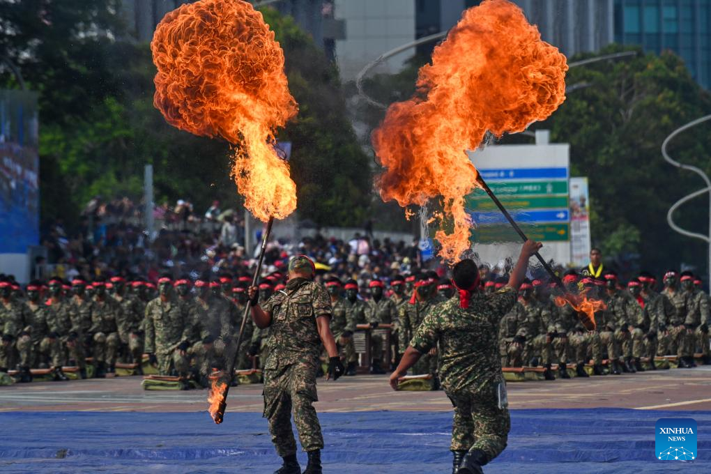 Malaysian soldiers perform at the celebration event marking the country's 67th anniversary of independence in Putrajaya, Malaysia, Aug. 31, 2024. Malaysia marked the 67th anniversary of independence on Saturday, with a huge public turnout at the administration center of Putrajaya to mark the National Day. (Photo by Chong Voon Chung/Xinhua)