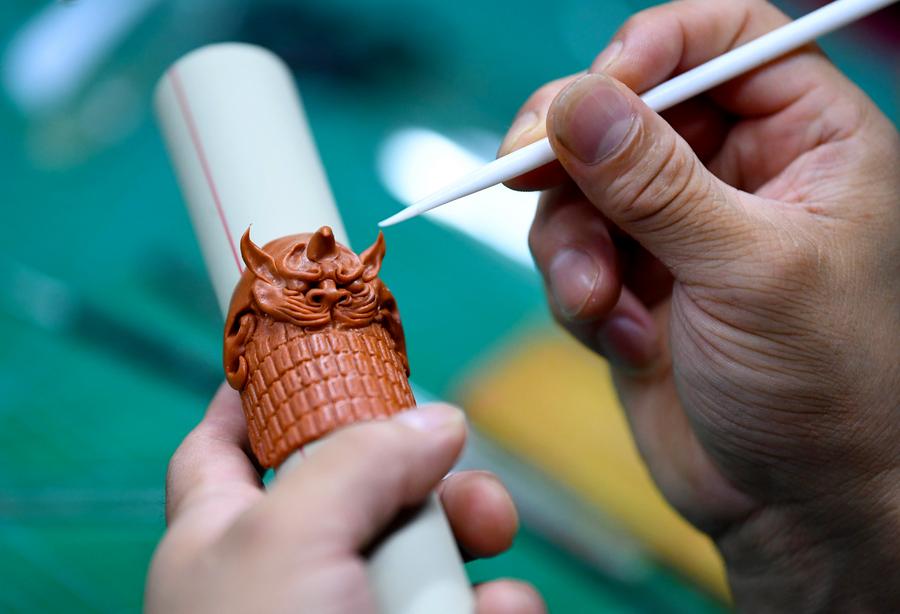 The dough handicraft takes wheat and glutinous rice flour as its main building materials, which are mixed with oil, salt, vinegar and other ingredients. Using hands and simple tools, an artist kneads and pinches the dough to turn it into intricate and lifelike figures.