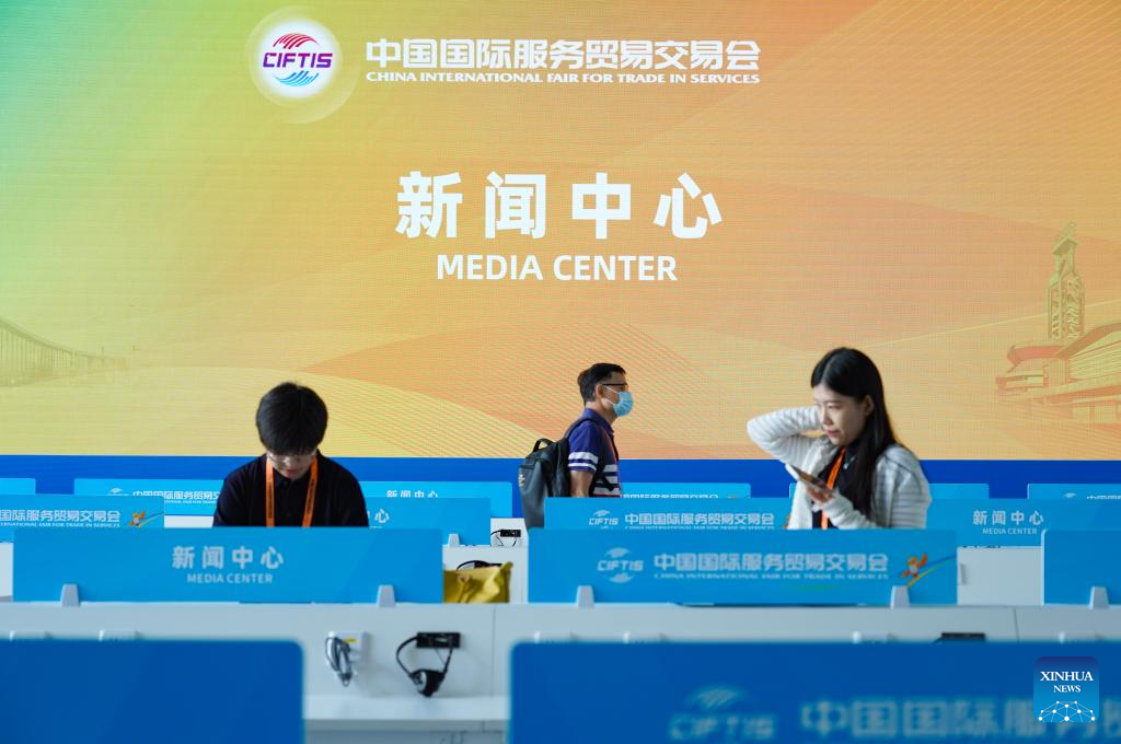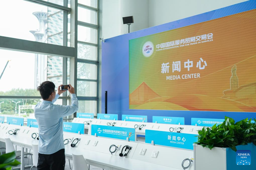 This photo shows the media center of the 2024 China International Fair for Trade in Services (CIFTIS) in Beijing, capital of China, Sept. 11, 2024.