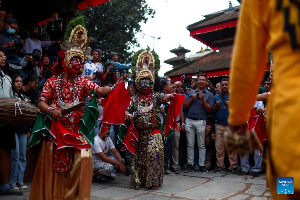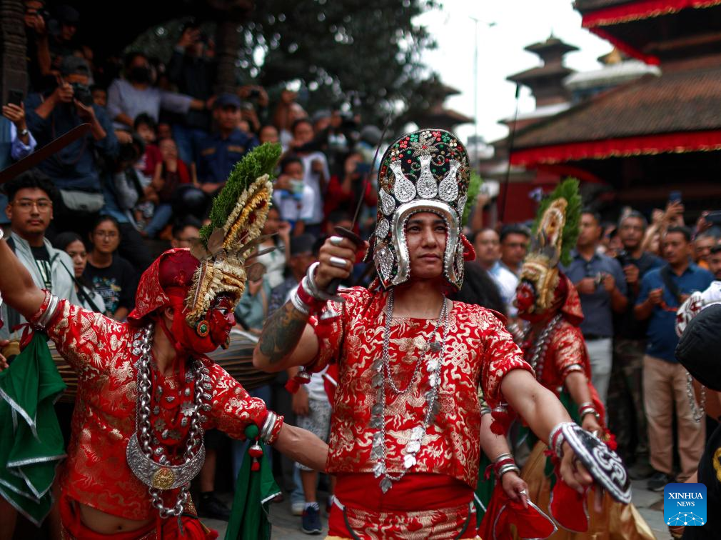 The eight-day festival honors the god of rain Indra. (Photo by Sulav Shrestha/Xinhua)