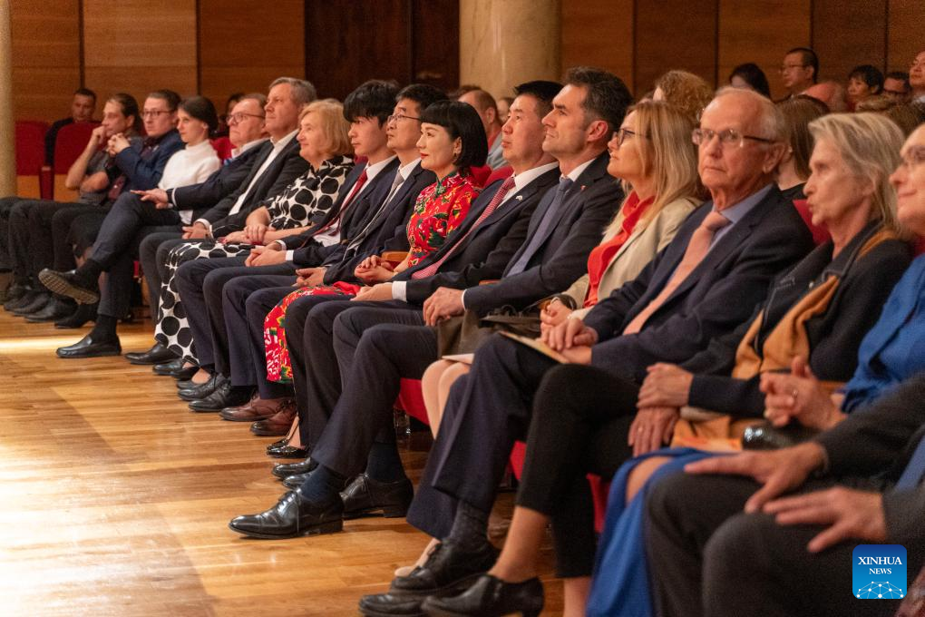 Co-hosted by the Ministry of Culture and Tourism of China and the Chinese Embassy in Poland, the concert was performed by musicians from the China National Opera and Dance Drama Theater, together with Polish musicians. (Xinhua/Xia Yuanyi)