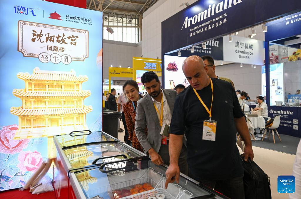 Foreign customers seek cooperation opportunities at the Ice Cream China 2024 in north China's Tianjin Municipality, Sept. 26, 2024. Ice Cream China 2024 opened Thursday in Tianjin, attracting more than 450 companies from home and abroad. (Xinhua/Sun Fanyue)