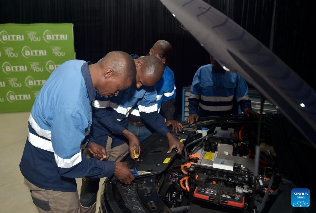 Botswana on Monday unveiled its first batch of locally assembled electric vehicles in Gaborone, the capital of Botswana, with support from two Chinese vehicle manufacturing companies.(Photo by Tshekiso Tebalo/Xinhua)