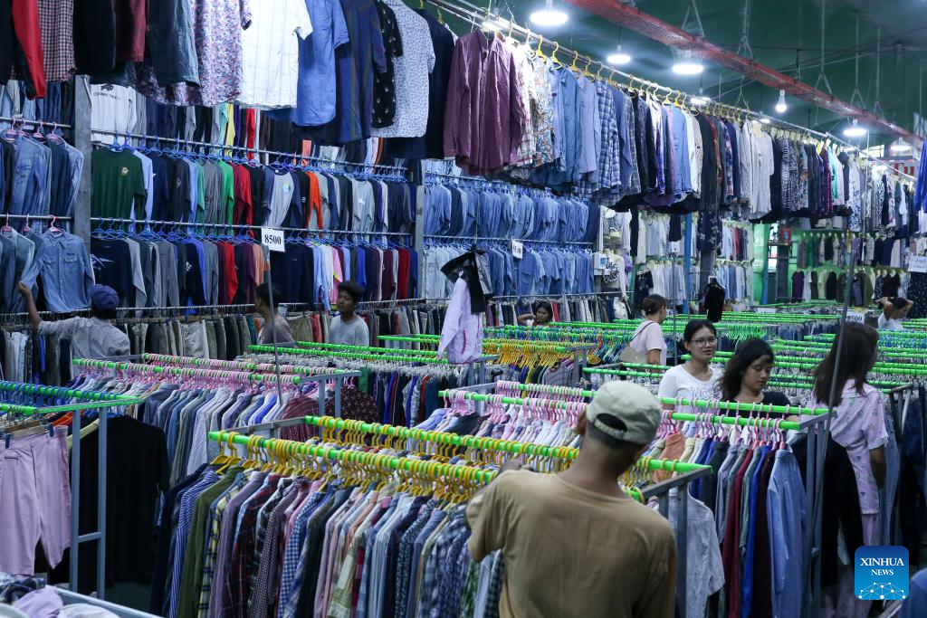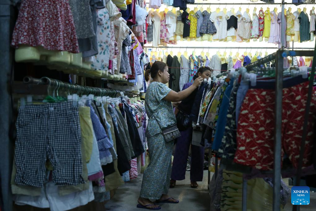 YANGON, Oct. 9 (Xinhua) -- In the commercial hub Yangon of Myanmar, the bustling Kyimyindaing second-hand clothing market offers a lifeline for those seeking affordable fashion amid rising costs.