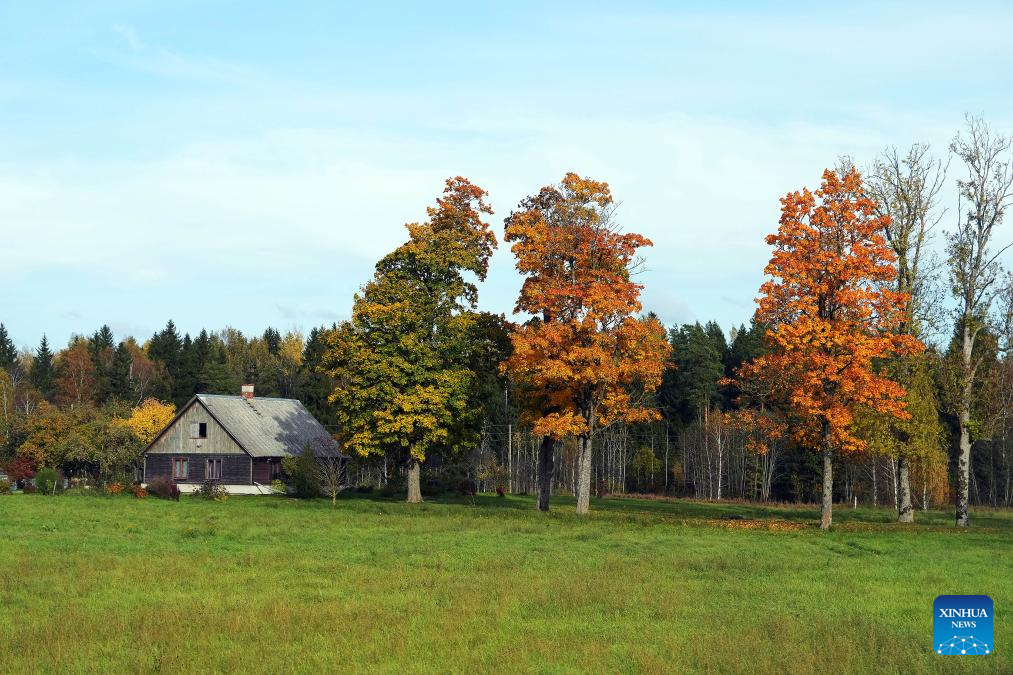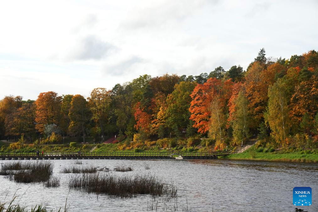 This photo taken on Oct. 13, 2024 shows the autumn scenery in Ogre, Latvia. (Photo by Edijs Palens/Xinhua)